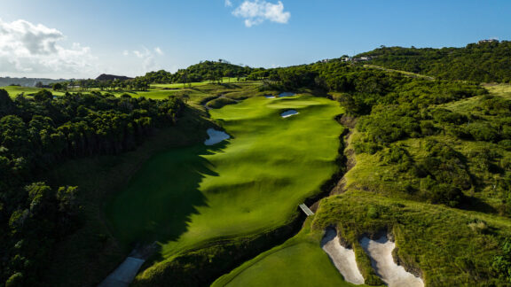 Perched above the Atlantic Ocean and crafted around the cliffs and valleys of Saint Lucia’s magnificent landscape, Point Hardy Golf Club offers an unparalleled Caribbean golf experience. Guided by nature along 1.5 miles of coastline, course architects Bill Coore and Ben Crenshaw followed the natural lay of the land, winding the holes through lush terrain, over rocky outcrops, and along rugged bays sheltering white-sand beaches. As nine greens play along the ocean, all 18 holes offer incomparable views. Ranked 76th in the prestigious Top 100 Courses in the World from GOLF Magazine, Point Hardy Golf Club exemplifies the magic of the greatest game ever played.